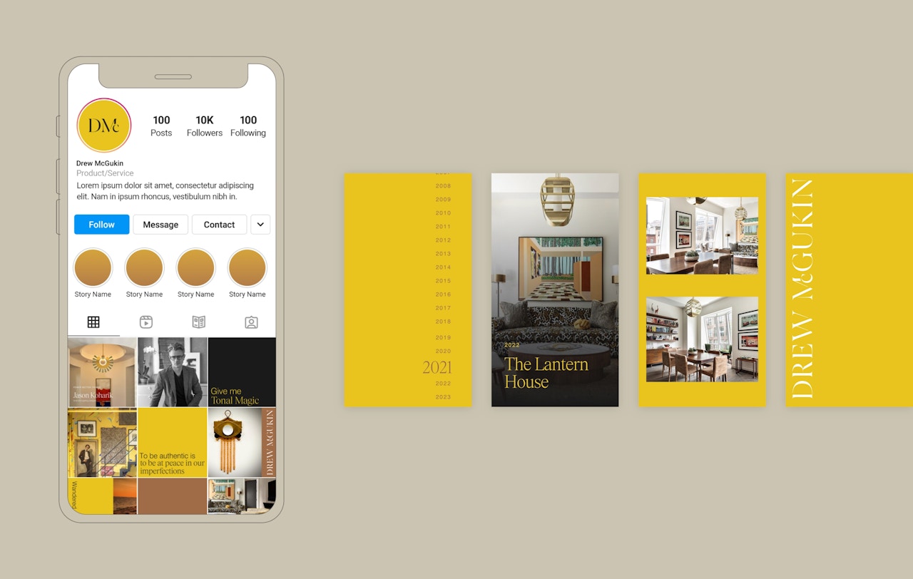 His innate authenticity, that radiates from one project to the next, served as a North Star for our team when it came to creating the designer’s visual identity, which encompassed a large-scale brand refresh across all touchpoints. With color as our muse, we strategically executed an artistic website that was singular to Drew’s one-of-a-kind persona along with accompanying print collateral. In tandem, we created a complementary social gameplan expressed through artful, high-design reels and engaging in-feed posts to further cement the new vision of the brand.